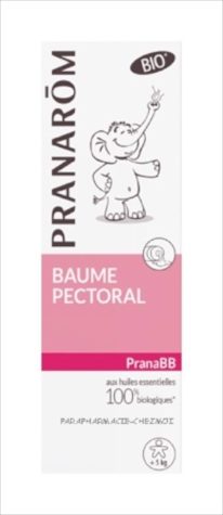 Le baume pectoral PranaBB des laboratoires Pranarom est un gel respiratoire composé d'huiles essentielles 100% biologiques qui va faciliter et dégager les voies respiratoires du jeune enfant lors d'encombrement.